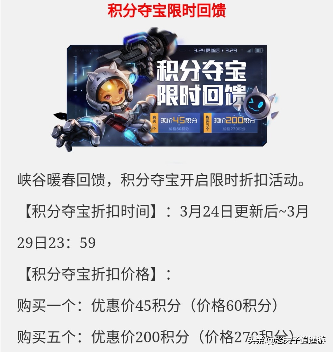 其次就是积分夺宝活动开启并且开启打折模式,具体时间持续到3月29日23:59分