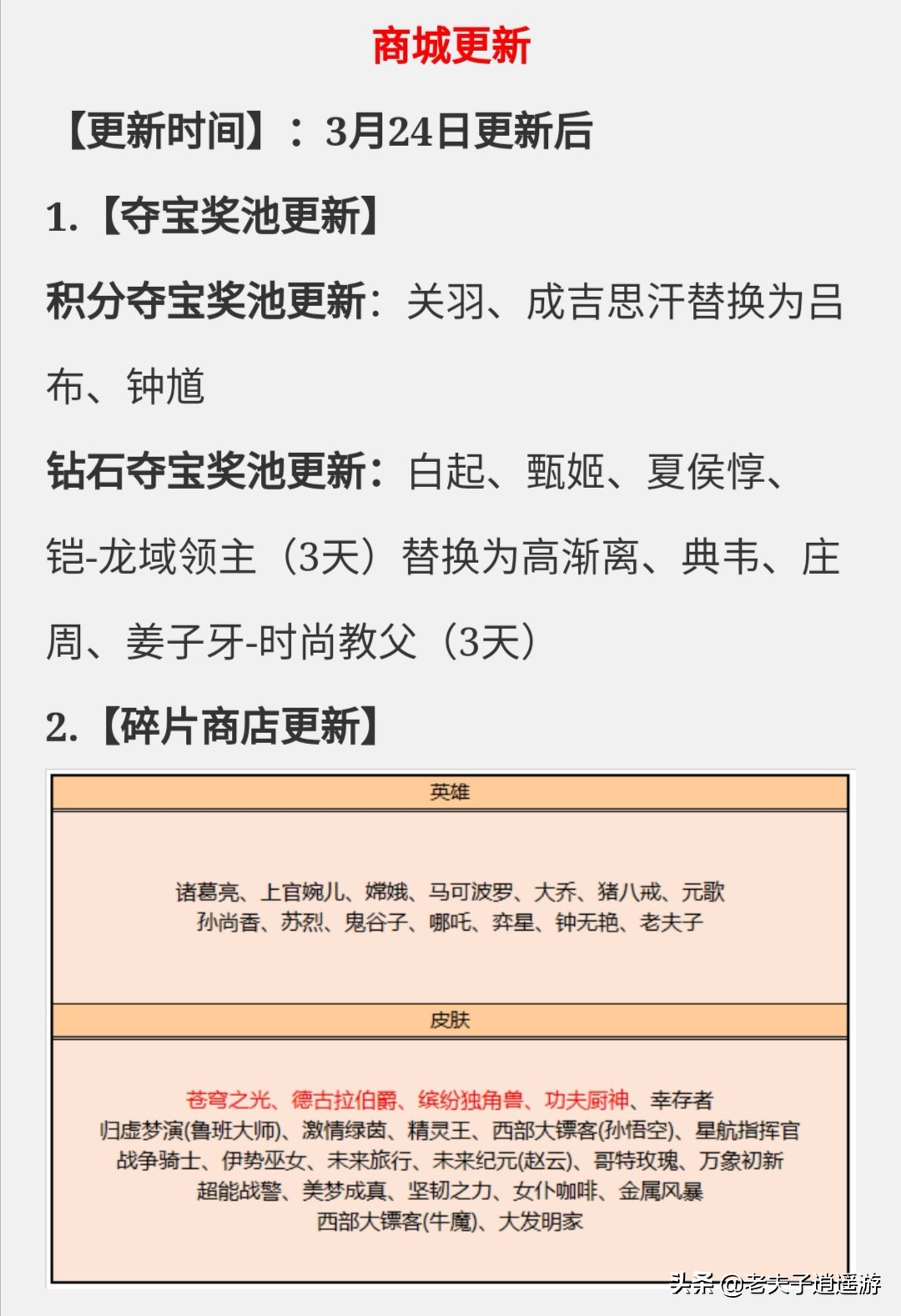 大家好,我是专注于王者荣耀的老夫子逍遥游,对于王者荣耀3月24日不知火舞皮肤上线,夺宝打折开启,碎片商店更新这个问题说说我的看法。