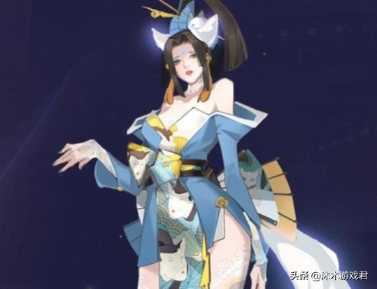不知火舞身穿浅蓝色的和风衣服,头上插着簪子,并且有一个白色的面具装饰,和貂蝉的FMVP的面具很像。
