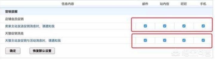 4、淘宝商家营销短信的屏蔽办法很简单,你需要在PC端登陆你的淘宝账户,然后点击【账户设置】-【网站提醒】-【营销提醒】,在这里,将营销提醒中默认勾选的提醒取消,然后保存设置,这样就彻彻底底屏蔽掉了淘宝的营销短信。