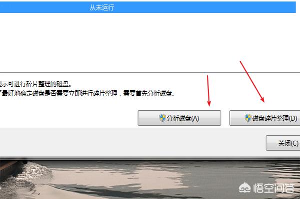 三、在新的对话框中选中你想要进行碎片整理的磁盘分区,然后点击“分析磁盘(A)”,