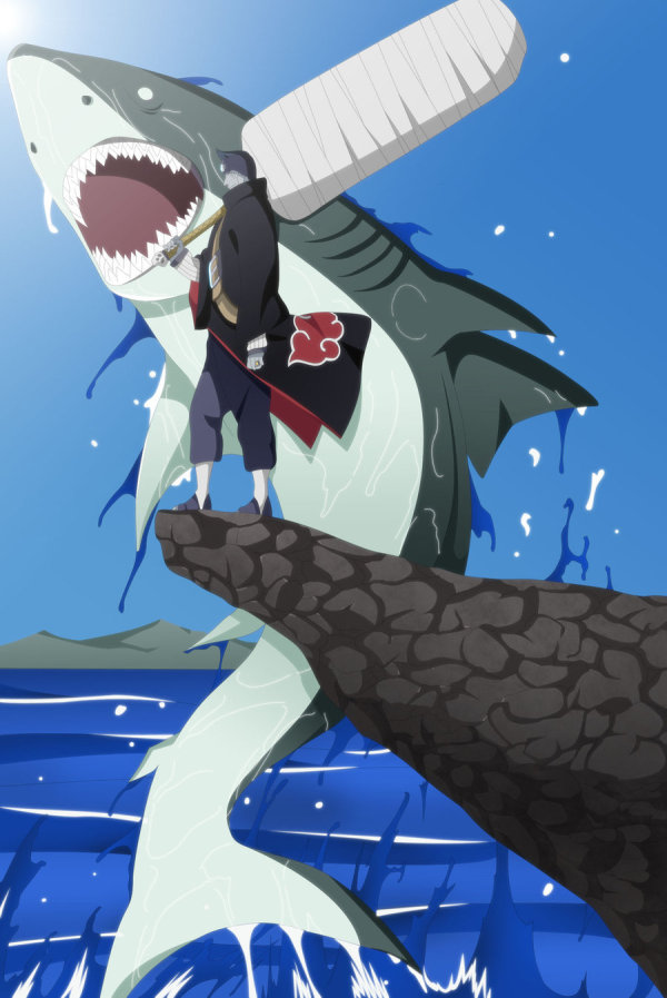 在火影的第471集中,鬼鲛与拥有强大体术的迈特凯进行对决并且败下阵来,鬼鲛对开了第七门的迈特凯竟毫无招架的能力,最后时刻,鬼鲛利用自己强大的意念挣脱了束缚,为了重要信息的保密,利用水牢之术让自己通灵出来的鲨鱼吃了自己