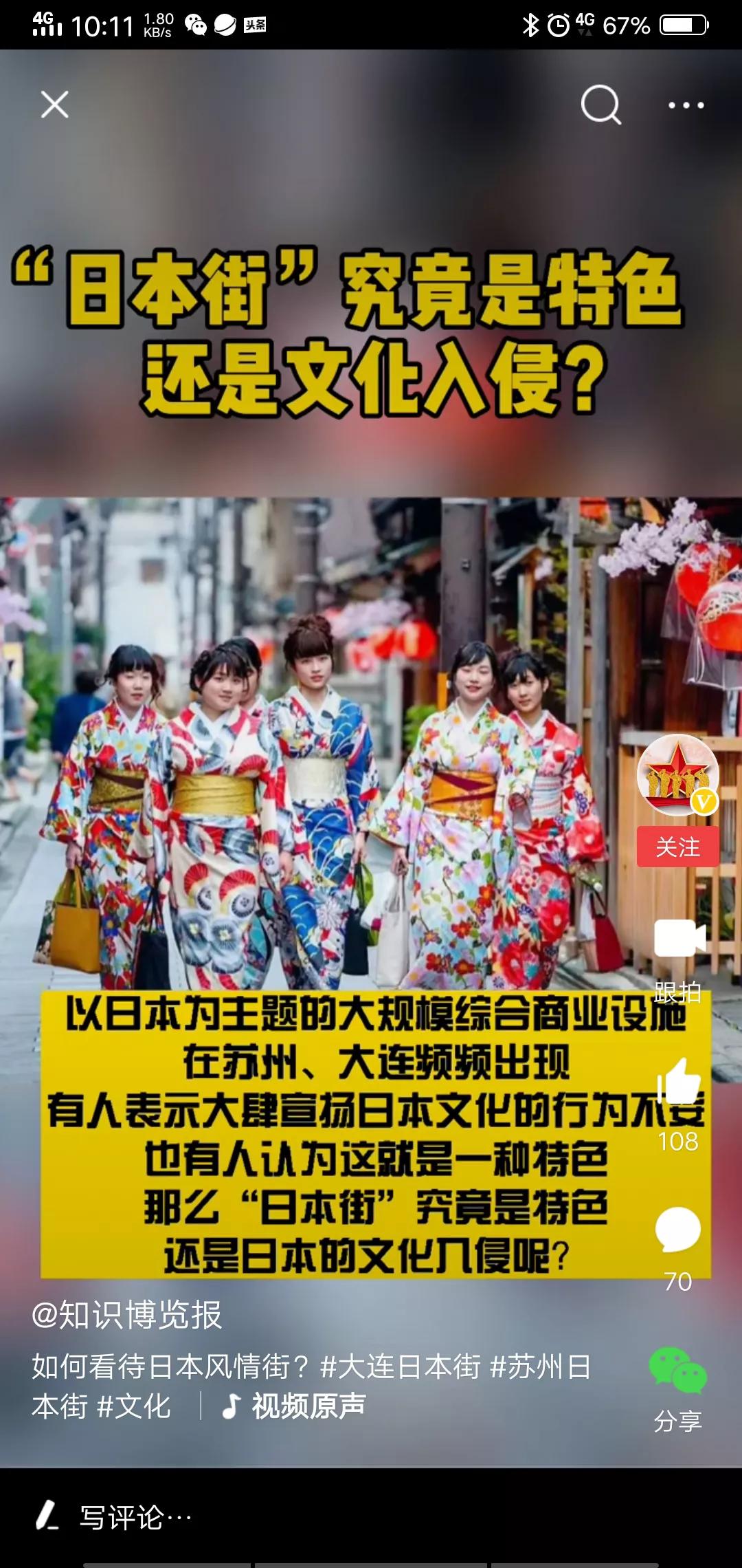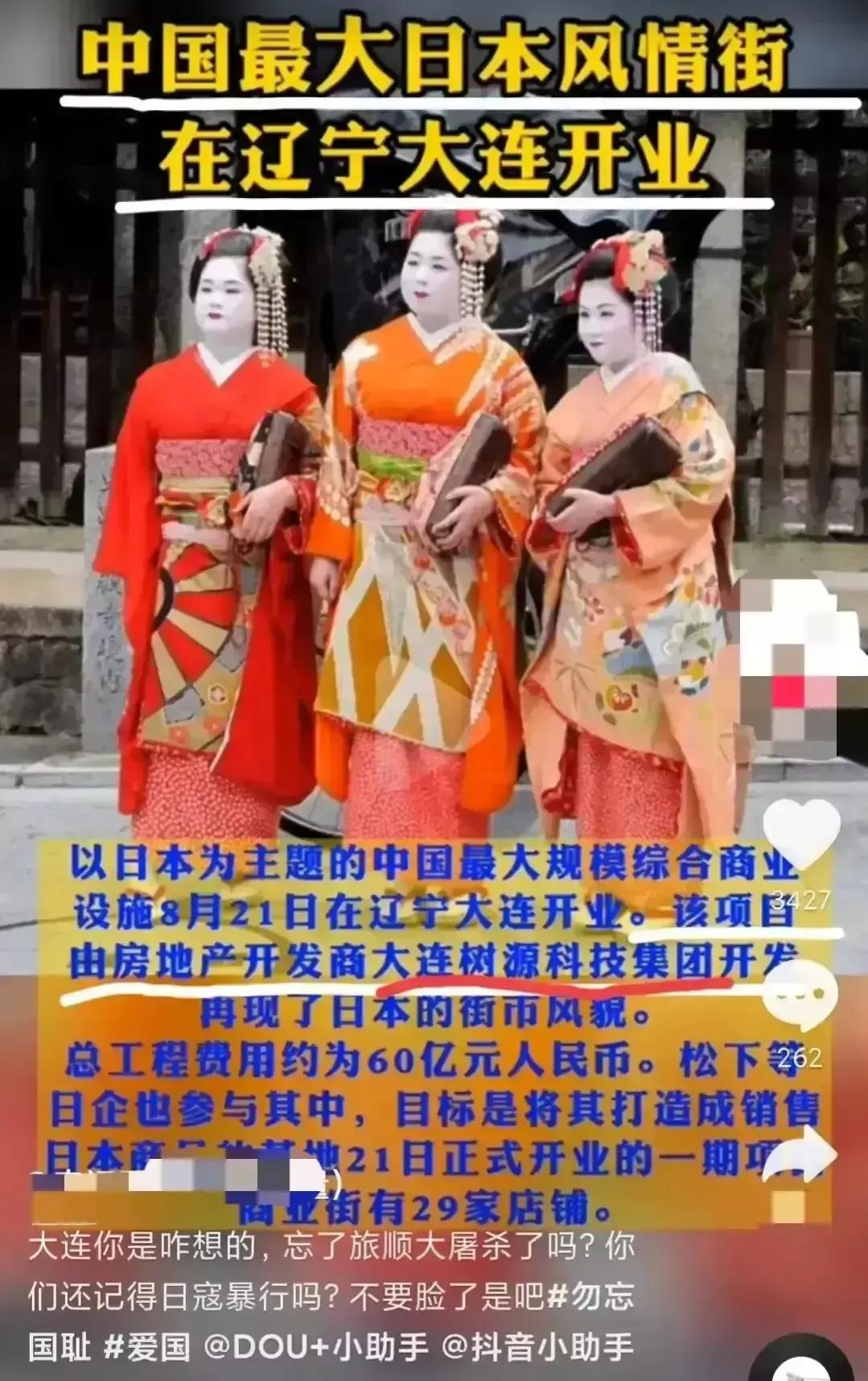 但在国内这样做“日本风情街”自然会与历史联系起来,近代近代日本是一个侵略者的角色,对中国发动了侵略战争,造成中国国力倒退。