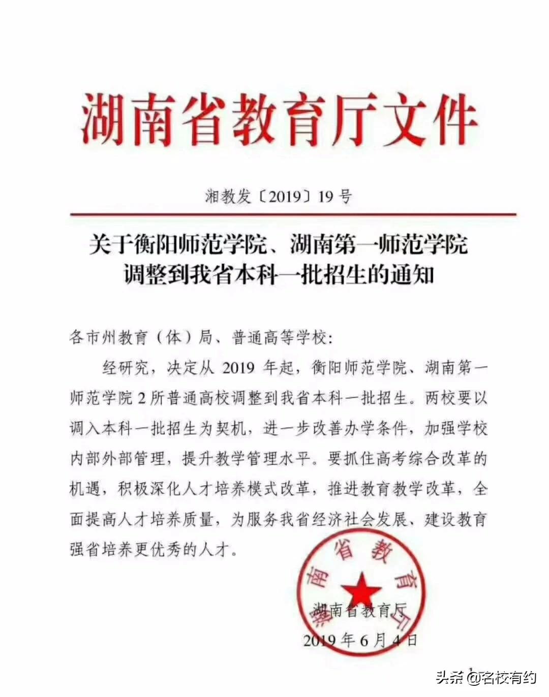 衡阳师范学院从2019年开始调整到湖南省本科一批录取,与湖南第一师范学院一起光荣上榜。此次调整到本科一批招生的衡阳师范学院和湖南第一师范学院,均是湖南省最有名、历史最悠久的师范院校