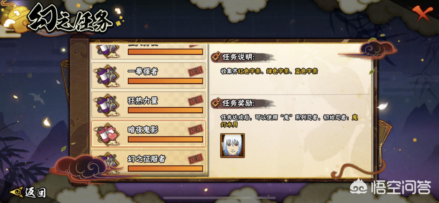 鬼灯水月应该是比较特殊的解锁忍者,他是需要集齐三个不同颜色的纸条,分别是蓝色、绿色和红色,前面两个比较容易拿到,只需要通关一次须佐鼬(蓝色),用卡卡西通关一次(绿色)就行,只是后面这个红色纸条比较难拿,他只会在光门里的宝箱中产出,我也是今天刚刚拿到了这个纸条解锁了鬼灯水月,但是忘记截图在光门里的图了,但是可以非常确认的是需要在光门里随机获取,只是你需要放弃光门中另外两个强化技能才行。