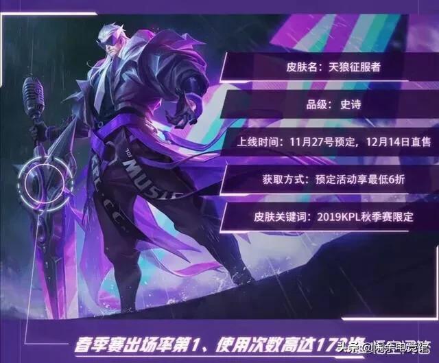 而在26-27号左右登录的新皮肤是曹操的KPL限定皮肤,是天狼星计划系列皮肤之一,名为天狼征服者,首周会有折扣价,定位史诗级别。