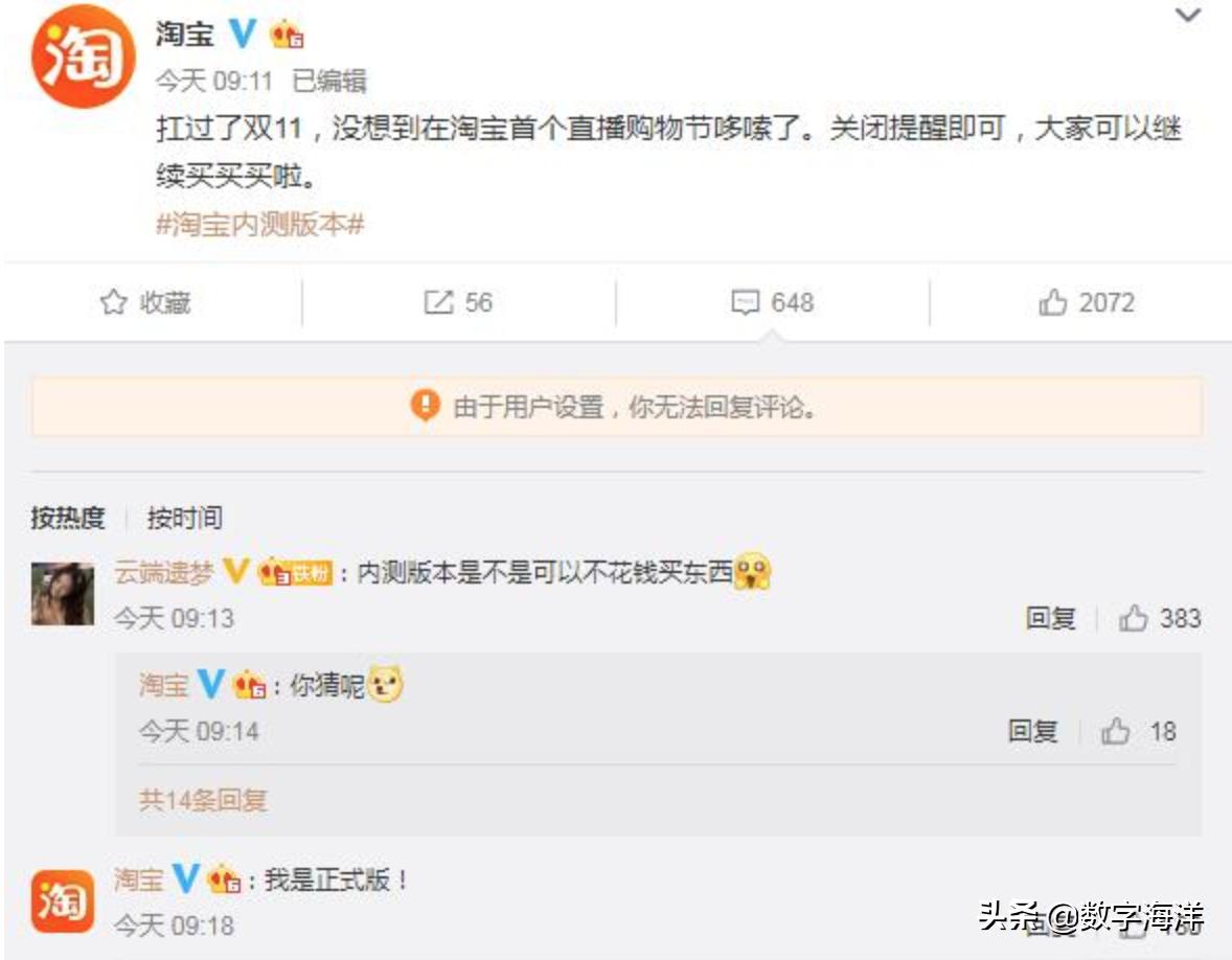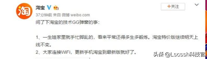当网络上对此故障出现疑问时,淘宝官方微博却跑出来称自己一切正常,但是回复的文字中却顾左右而言他,根本没有正面回应弹窗到底是怎么回事。