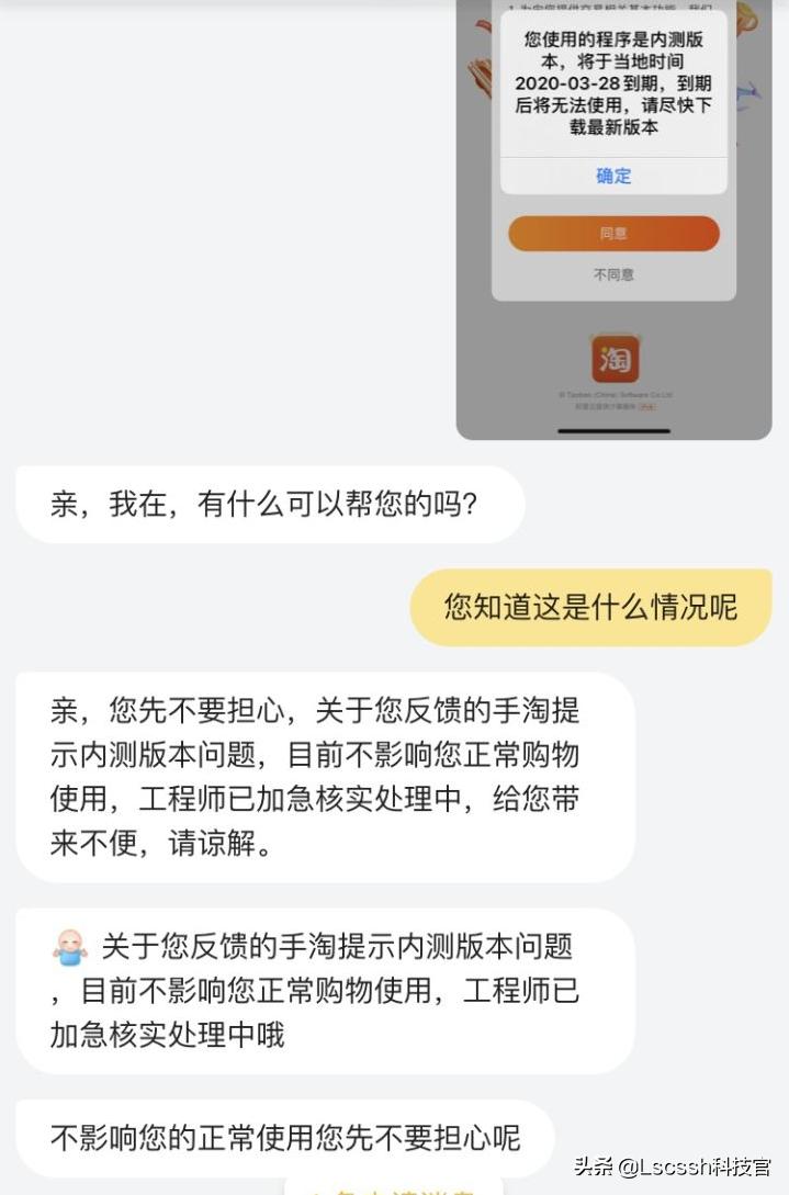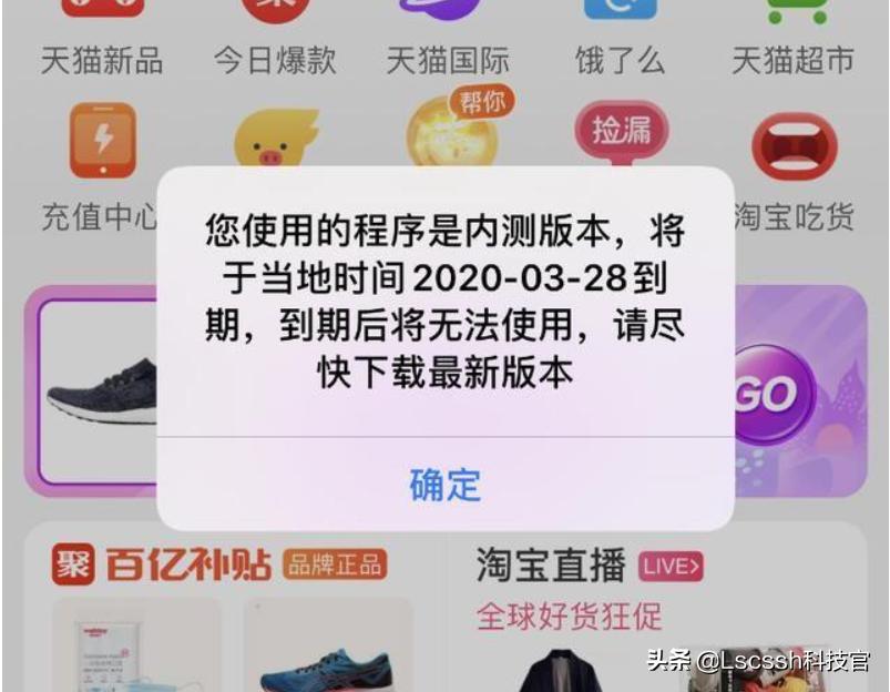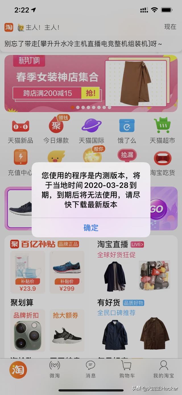 2020年3月25日苹果手机淘宝客户端发布消息,说为内测版,2020-3-28到期怎么回事