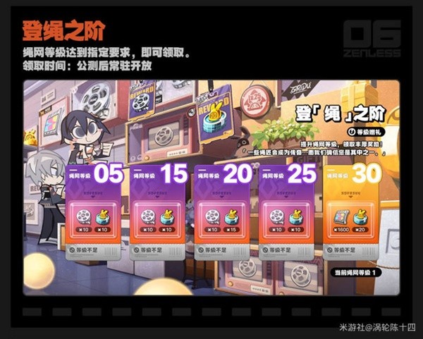 常驻池70+限定池30抽,几乎没有任何门槛,绳网等级按三测的感受也不难达到,特别是前25级,很快就能把对应的普池券获得完,先捞第一个S级代理人,并围绕他构建队伍。
