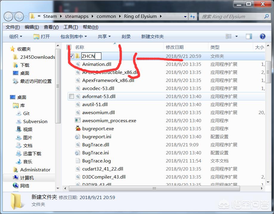 打开steam文件夹,因为在steam平台里下载《无限法则》默认是安装在C:\steam\steamapps\common/(游戏列表)里的,然后打开《无限法则》游戏文件夹,它英文是Ring of Elysium,直接打开就是了。进去之后在空白处点击鼠标右键,然后创建一个新的【文本文档】,然后改名为【ZHCN】,最后将文档的.txt去掉便可完成简体中文版设置。