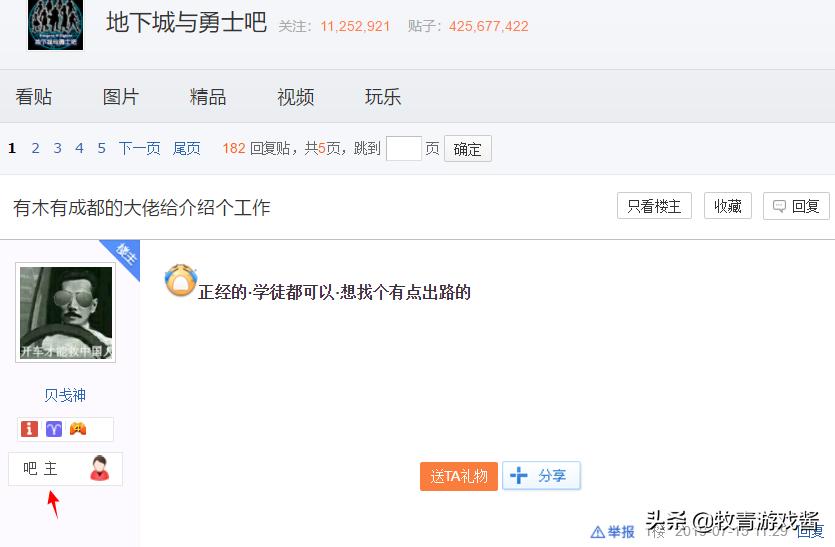 堂堂大吧吧主混成这样,我作为玩家也看不下去了,当然,据说游戏吧很多都这样,兼职当吧主,类似苦力干活却没有工资结算,生活质量堪忧。那个DOTA2的吧主据说也在找工作,都挤一块了。前有dnf玩家不断脱坑,如今吧主下场找工作,这还能不能给人点希望啊。