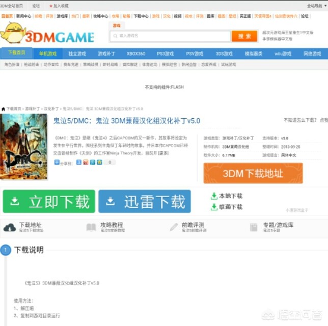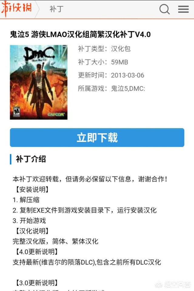 不过游戏嘛!自己买的觉得好玩就可以了,汉化补丁网上面有很多的,你百度输入“鬼泣DMC汉化补丁”就可以,或者去3DM游戏论坛以及游侠上面下载一个汉化补丁!