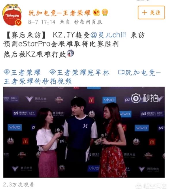 而在赛后采访中,主持人问到kz的边路jy,他们下一场的对手将是estarPro和go之间的胜者,而主持人问到jy谁将会获胜的时候,他觉得estar将会艰难地获胜。而主持人继续问他觉得kz和estar谁能够获胜的时候,jy表示他们可能会艰难地战胜estar。