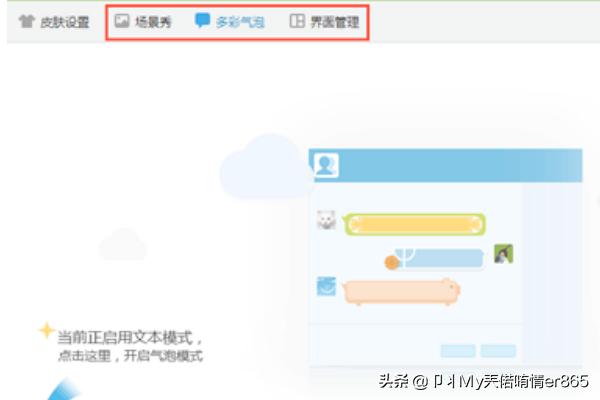 8.我们再皮肤更改窗口里面,还有“场景秀、多彩气泡、界面管理”等玩法,我们可以进入修改设置下。但是很多是需要钻才能玩的,不做介绍。