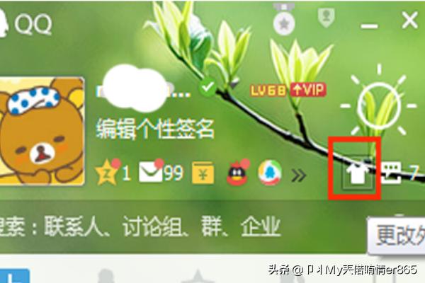 2.点击我们QQ界面的那个衣服的图标,就是我们更改皮肤的入口。我们点击进入,开始我们的修改历程。