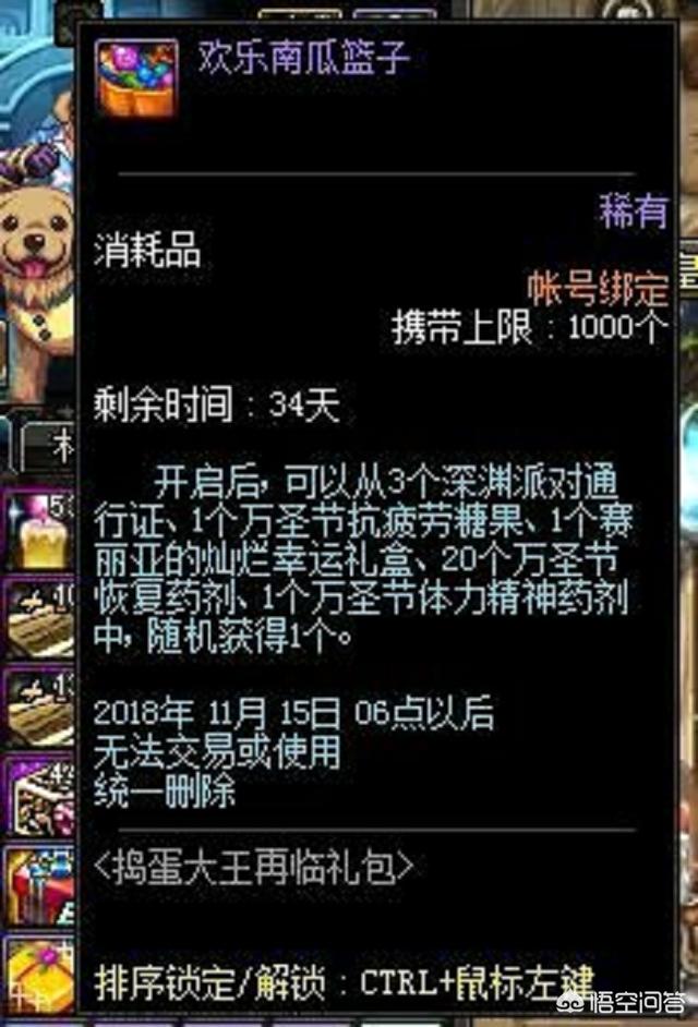 里面除了头套装扮外,还有5个南瓜篮子,可以随机开到3个深渊通行证或者其它的一些消耗品,5次开到1次番薯都不亏了。