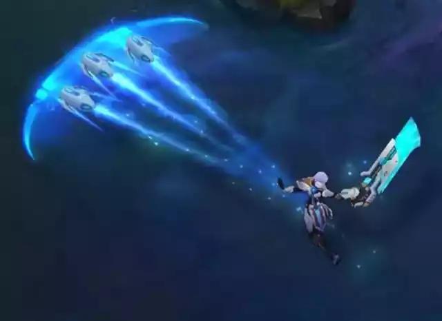 来战士皮肤.瑞雯的未来战士皮肤,是一款科技满满的皮肤。这款皮肤在开启了大招的时候,瑞雯的光刃向前斩击,释放出一道蓝色的剑气,这剑气由三个飞行器组成,看上去非常的高大上.