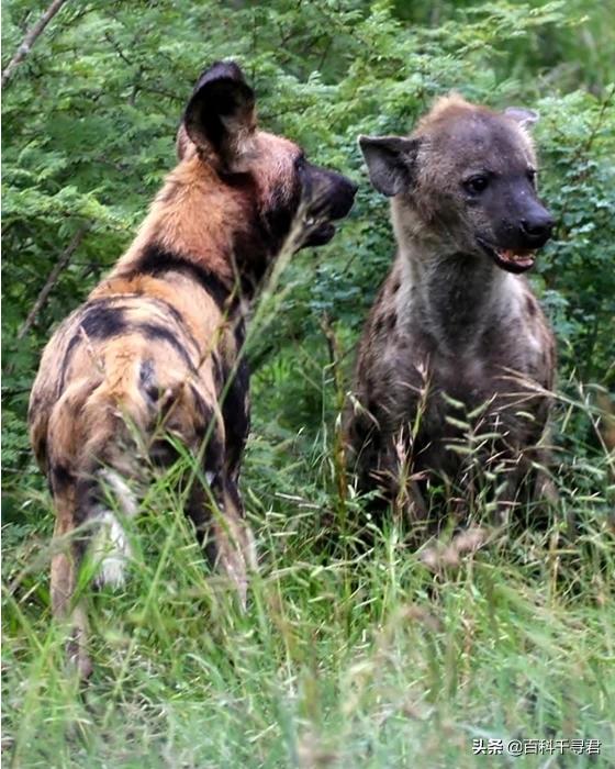 从一些图片来看,斑鬣狗面对非洲野犬时处于下风,一是因为非洲野犬数量占优势,一般来说,2只以上的野犬才有能力对抗一只斑鬣狗。二是野犬比斑鬣狗灵活很多,斑鬣狗身体强壮,但是灵活性差了些,而且野犬喜欢咬屁股,这让斑鬣狗难以招架。三只非洲野犬斗性强,斑鬣狗有时候很怂,而且没有猎物可抢的时候斑鬣狗也不想争夺。