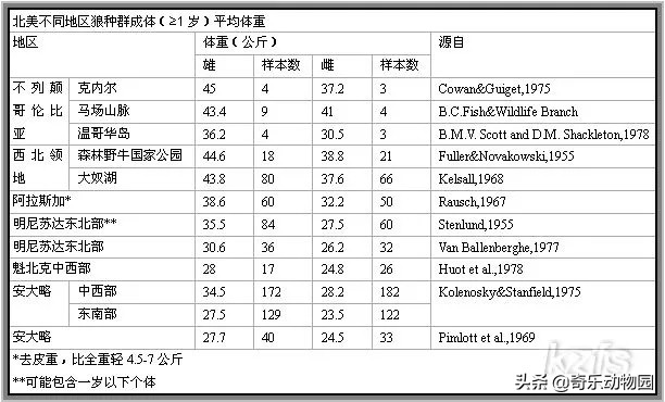 北美灰狼是当今世界上体型最大的的犬科动物!它们凭借超高的智慧以及团队协作活跃在北美大陆上。下面是一张北美灰狼的体重图表。