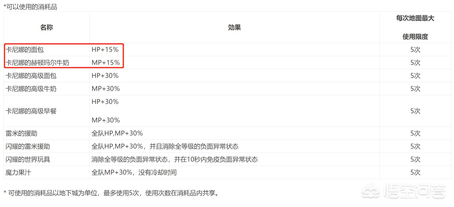 (▲ 普雷raid可以使用的消耗品,不包括限制购入的部分。图片截自17173@绝望型黑白熊)