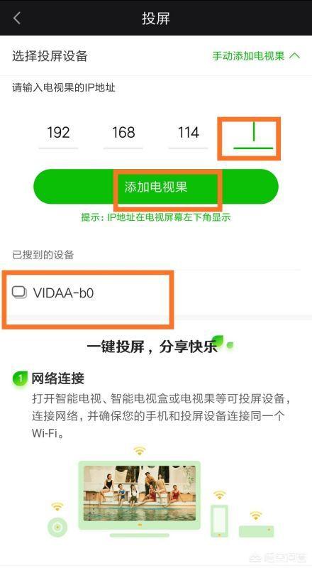 4、进入“投屏”设置后,单击添加电视果,该选项会弹出界面,如下图所示。