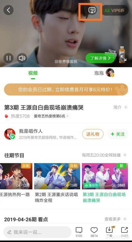 5、最后,返回爱奇艺主界面以选择要推送的视频,就可以在视频上方看到TV投屏的图标了,如下图所示。