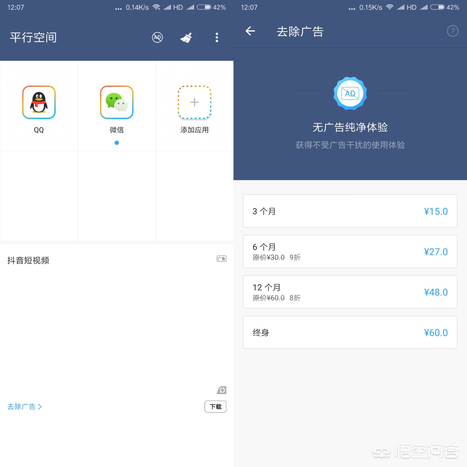 比较简单的一个分身软件,没有什么特别的功能,软件比较简洁,广告也很少,去除5元一月,如果,只是想新建一个分身没什么特别要求建议用它。