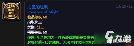 - 力量的证明(战士):提高头盔或腿部的耐力10点,防御7点,盾牌格挡15点;