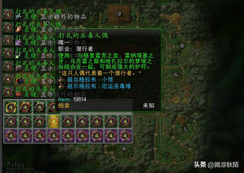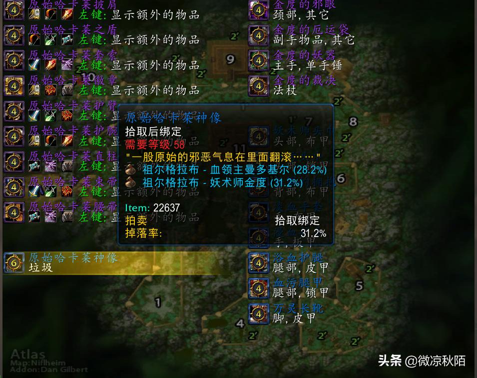 附魔所需要的物品是出自祖格的原始哈卡莱神像和打孔的巫毒人偶,哈卡莱神像掉落自血领主曼多基尔和妖术师金度,每次掉落两个,拾取绑定,比较稀有,需要不断的刷祖格。巫毒人偶区分职业,巫毒堆和祖格的怪都有掉落,也可以在AH掏到。