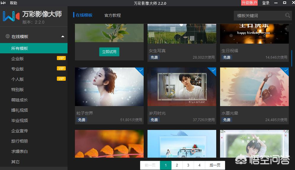 这个是现在挺热门的相册视频制作软件,操作上比较简单,适合新手,自带挺多模板和素材,直接替换图片,可以比较快制作出电子相册。它有免费版和收费版两个版本。我觉得免费版的功能就足够用了,至于其他版本,可以自己去了解。