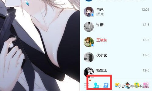 1、登陆并打开QQ,在主界面中找到上图红框的图标点击。