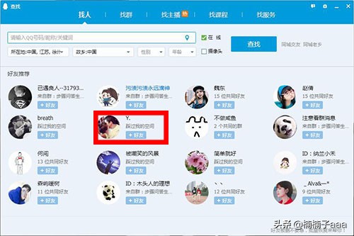 2、在这里找到的都是自己非好友的QQ,随便找一个人,点击头像。如上图所示。
