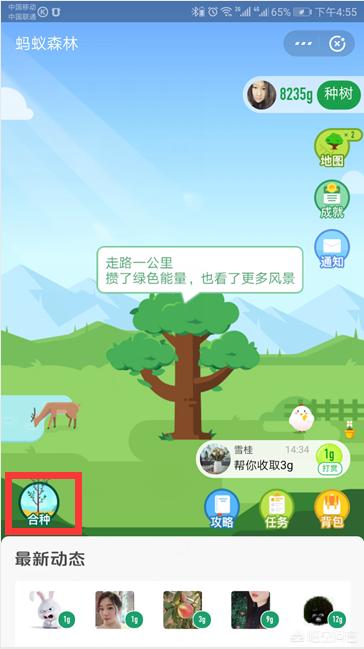 3、此时打开“蚂蚁森林”的界面,点击“合种”选项。