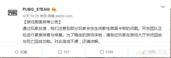 今天(18年2月22日)更新后很多玩家都出现了游戏内画面跳帧的情况,游戏体验不说是极差,应该说是根本没有游戏体验了,看了一下官博: