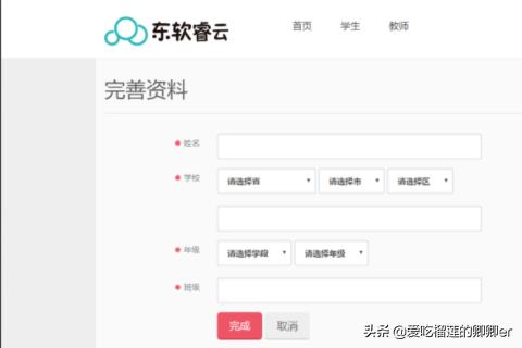 4、 我们选择好选项之后,我们就会来到一个资料完善页面,在这里我们需要填写好自己学校的地址,学校名称,还有我们的姓名和班级等等 。