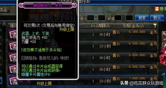 大家好,我是吃瓜。今天要说的话题是“DNF玩家爆出顶级附魔卡片上仅700W,做成宝珠后价格翻4倍,你知道这是为何吗?”